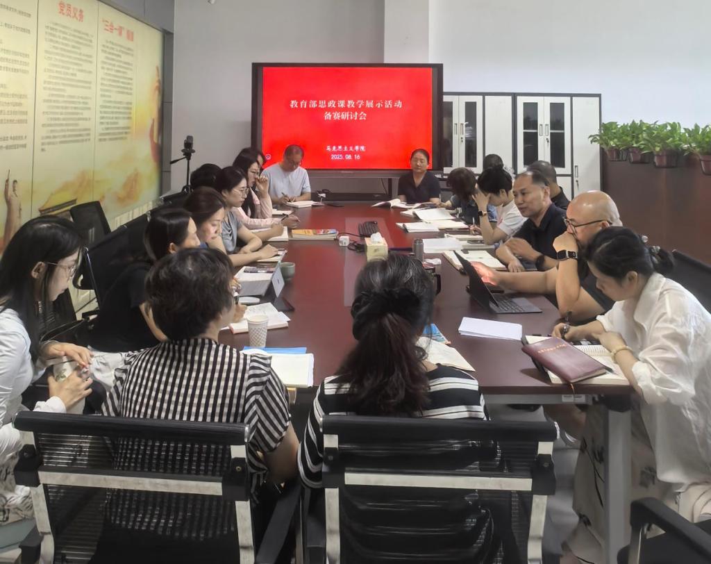 会上,马克思主义学院院长刘海滨传达了省教育厅关于对本次教育部思政课教学展示备赛的指示精神。“思想道德与法治”“毛泽东思想和中国特色社会主义理论体系概论”两门课程教学团队围绕备赛情况展开研讨。团队负责人、个人展示教师、各小组组长分别汇报了目前进展、备赛过程中遇到的实际困难及下一步计划。