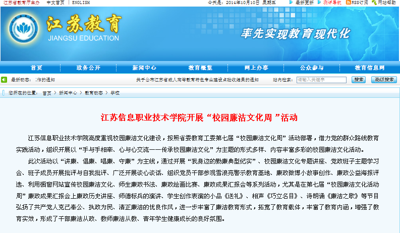 江苏教育网:江苏信息职业技术学院开展“校园廉洁文化周”活动