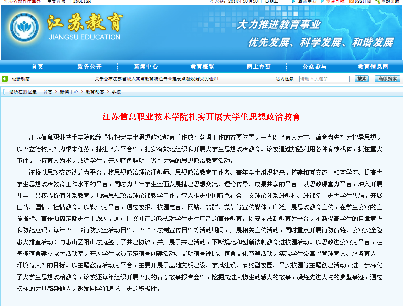 江苏教育网:江苏信息职业技术学院扎实开展大学生思想政治教育