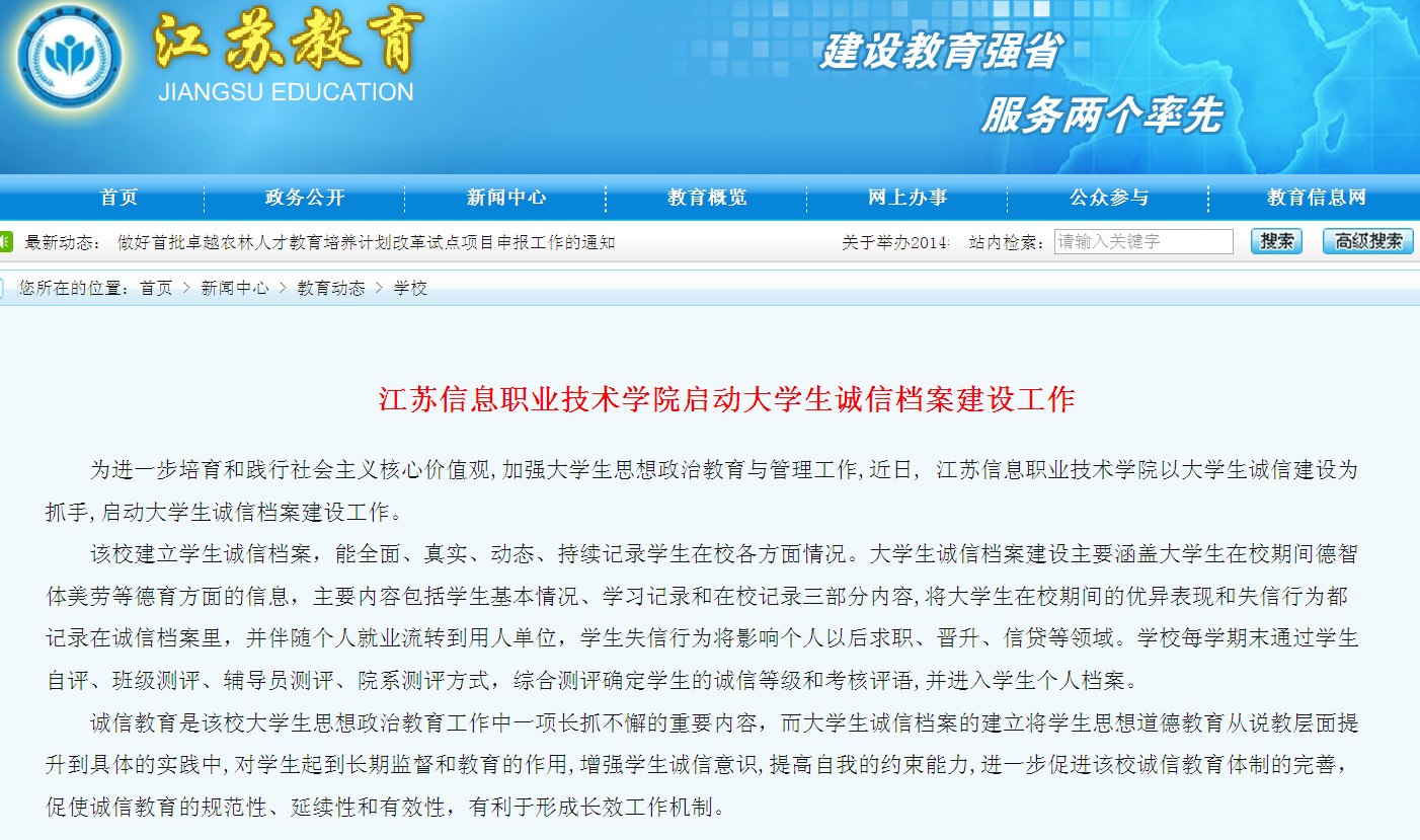 江苏教育网:江苏信息职业技术学院启动大学生诚信档案建设工作