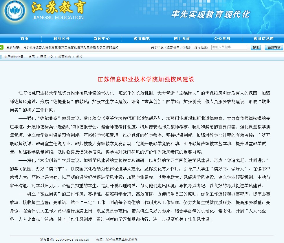 江苏教育网:江苏信息职业技术学院加强校风建设