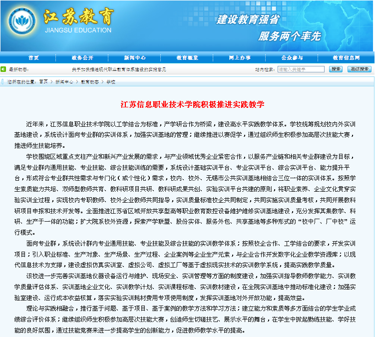 江苏教育网:江苏信息职业技术学院积极推进实践教学