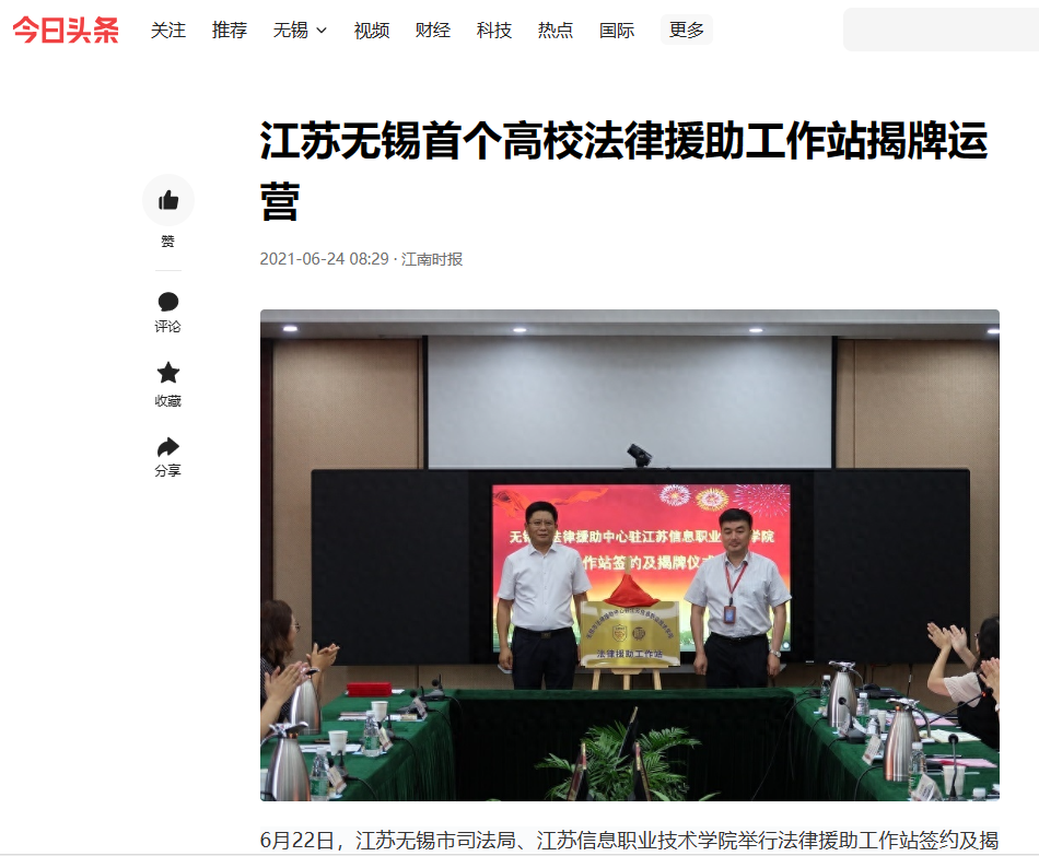 今日头条:江苏无锡首个高校法律援助工作站揭牌运营