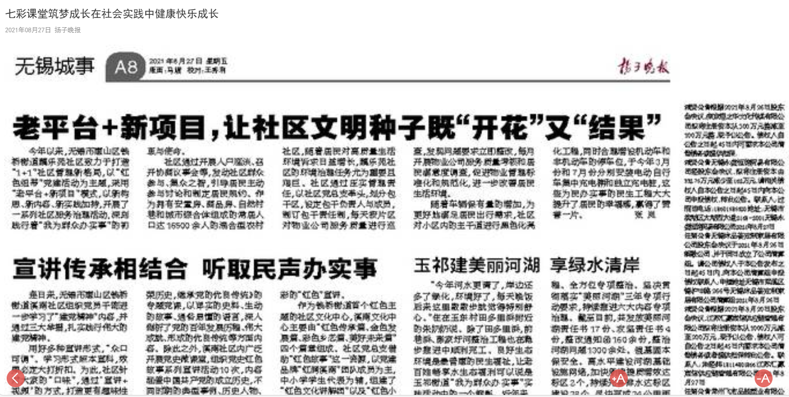 扬子晚报:七彩课堂筑梦成长,在实践中健康快乐成长