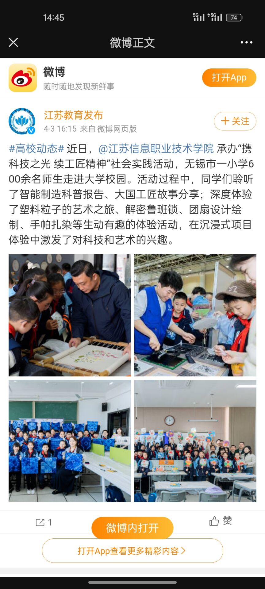 江苏教育发布:近日江苏信息职业技术学院 承办“携科技之光 续工匠精神”社会实践活动。