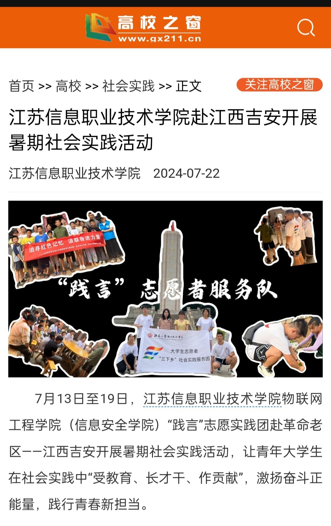 高校之窗:江苏信息职业技术学院赴江西吉安开展暑期社会实践活动