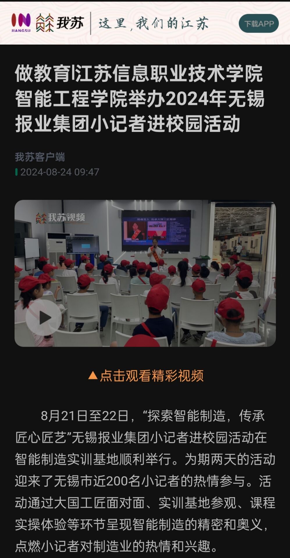 我苏网:江苏信息职业技术学院举办2024年无锡报业集团小记者进校园活动