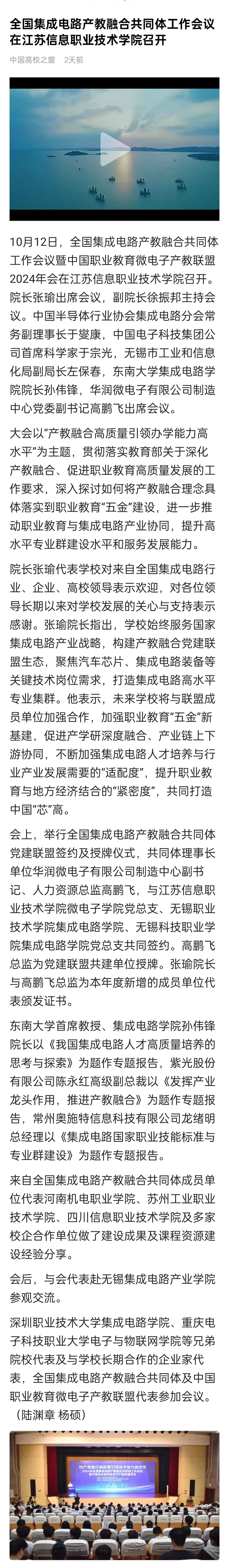 一点资讯:全国集成电路产教融合共同体工作会议在江苏信息职业技术学院召开