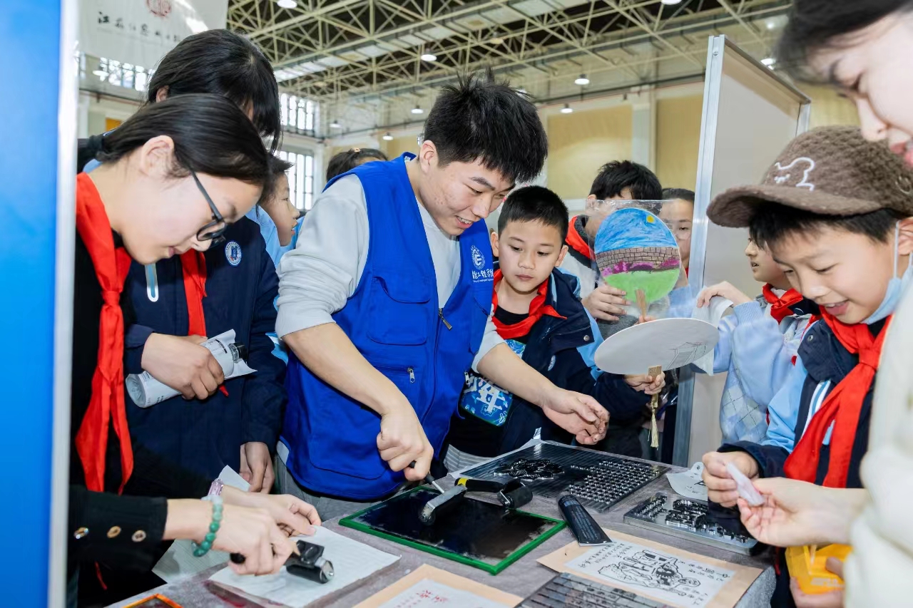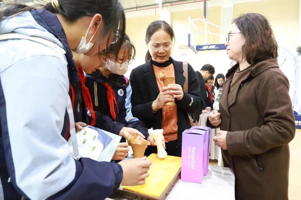 活动过程中,同学们认真聆听了由邓小龙博士带来的智能制造科普报告、全国劳动模范陈亮的大国工匠故事分享;分组参观了智能制造实训基地、锡绣工作室、陶艺工作室等;深度体验了塑料粒子的艺术之旅、解密鲁班锁、团扇设计绘制、手帕扎染等生动有趣的体验活动。在参观精雕之技展品、非遗文化展示的过程中,同学们对亚运会颁奖花束花器、机床模型、活字印刷等充满了兴趣,也对展品的由来生发求知欲。在为期一天的体验实践中,同学们通过聆听报告、观摩和沉浸式项目体验,切身感受到智能制造正在改变生产和生活,激发了大家对科技和艺术的兴趣,为职业教育启蒙奠定了基础。