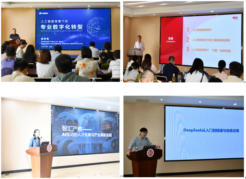 6月21日至22日,DeepSeek人工智能应用师资培训班在学校成功举办。本次培训由全国数字商贸产教融合共同体主办,江苏信息职业技术学院商学院、北京新大陆时代科技有限公司、南京奥派信息产业股份有限公司及新道科技股份有限公司联合承办。
