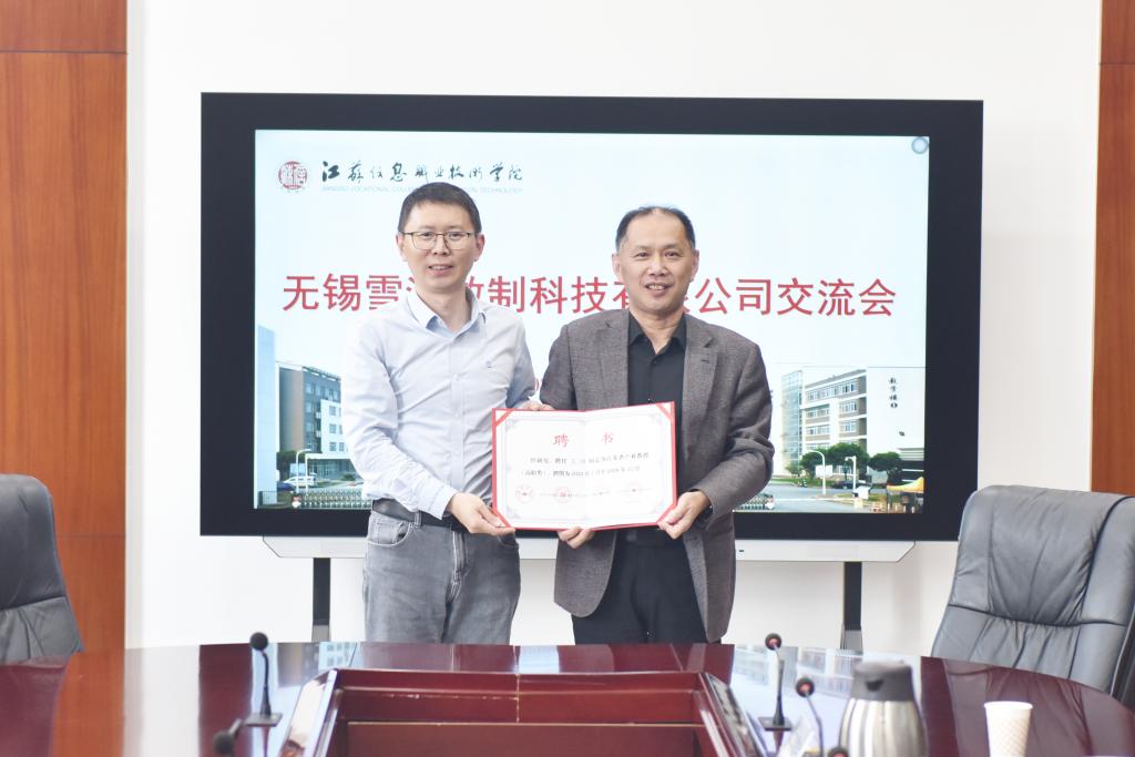 3月24日,无锡雪浪数制科技有限公司董事长、江苏省产业教授王峰一行来校洽谈校企合作。院长张瑜出席会议。
