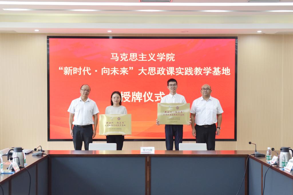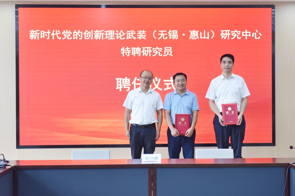 孔捷书记与茅春荣部长代表双方签署共建协议书。我校党委相关部门负责人、马克思主义学院负责人分别与无锡市委宣传部、惠山区委宣传部相关负责同志为“无锡市惠山区宣传思想文化干部培训基地”“新时代党的创新理论武装(无锡·惠山)研究中心”揭牌,为“新时代党的创新理论武装(无锡·惠山)研究中心”特聘研究员、惠山区“十百千万”宣讲团宣讲导师、“新时代·向未来”融合思政课特聘讲师颁发聘书,并向“延安精神无锡学习天地”“洛社镇新时代文明实践所”两处我校大思政课实践教学基地授牌。
