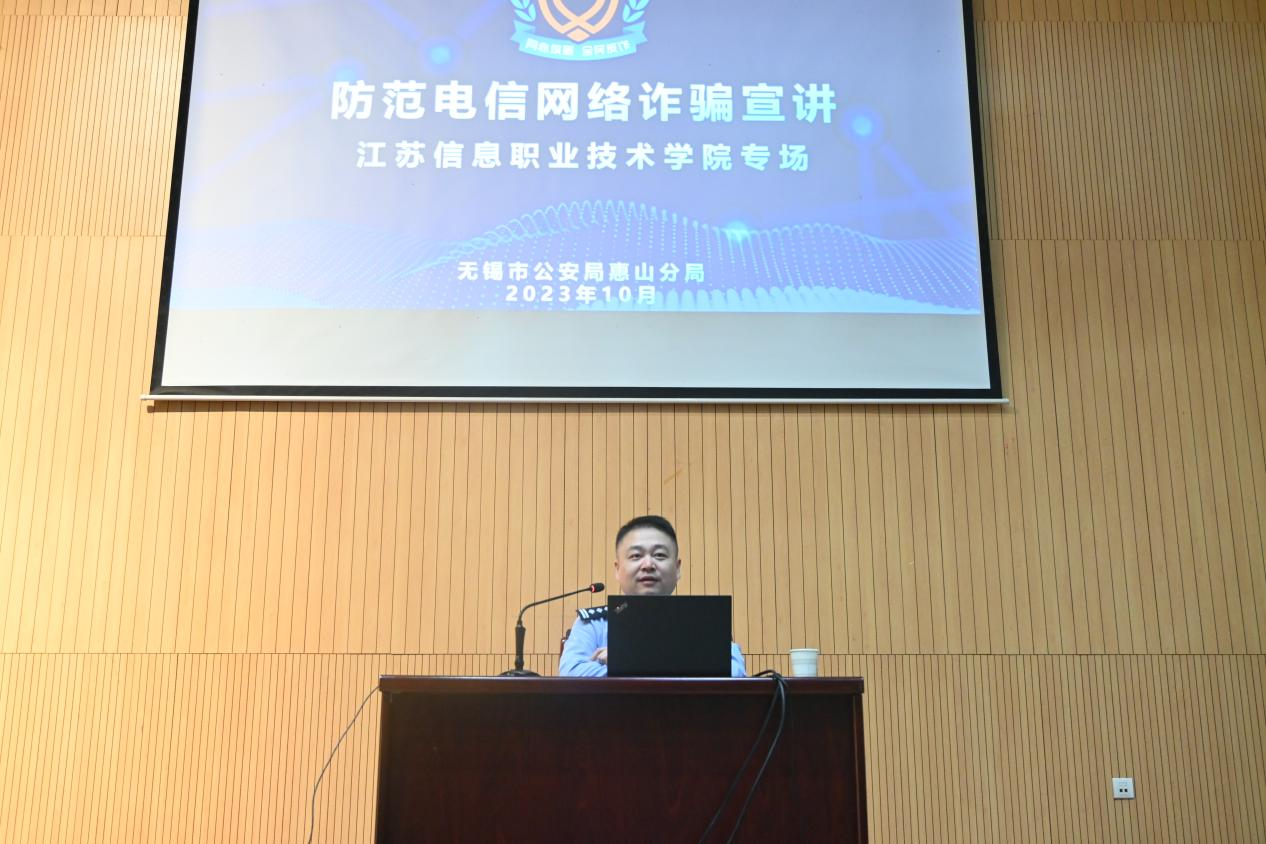 10月24日,无锡市公安局惠山分局副局长邵振晔来校做防范电信网络诈骗宣讲。