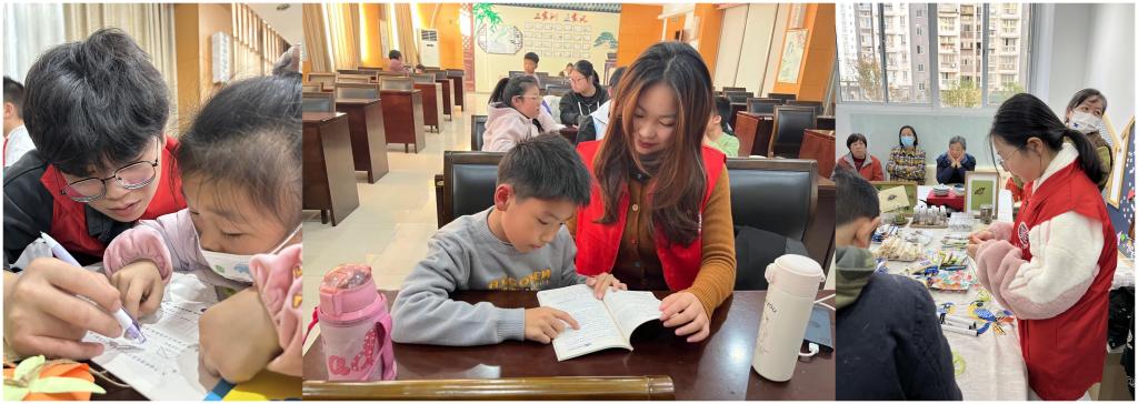 11月11日、11月19日,我校青年志愿者协会分别赴无锡市梁溪区广益街道广丰社区和滨湖区蠡园街道西园社区开展小学生课后服务关爱行动。活动中,志愿者们一对一服务社区中的留守儿童,通过理论宣讲、美术手工、户外活动、图书馆阅读、课后作业辅导等形式,帮助“红领巾”们树立自信心,提升学习生活的安全感、获得感和幸福感。