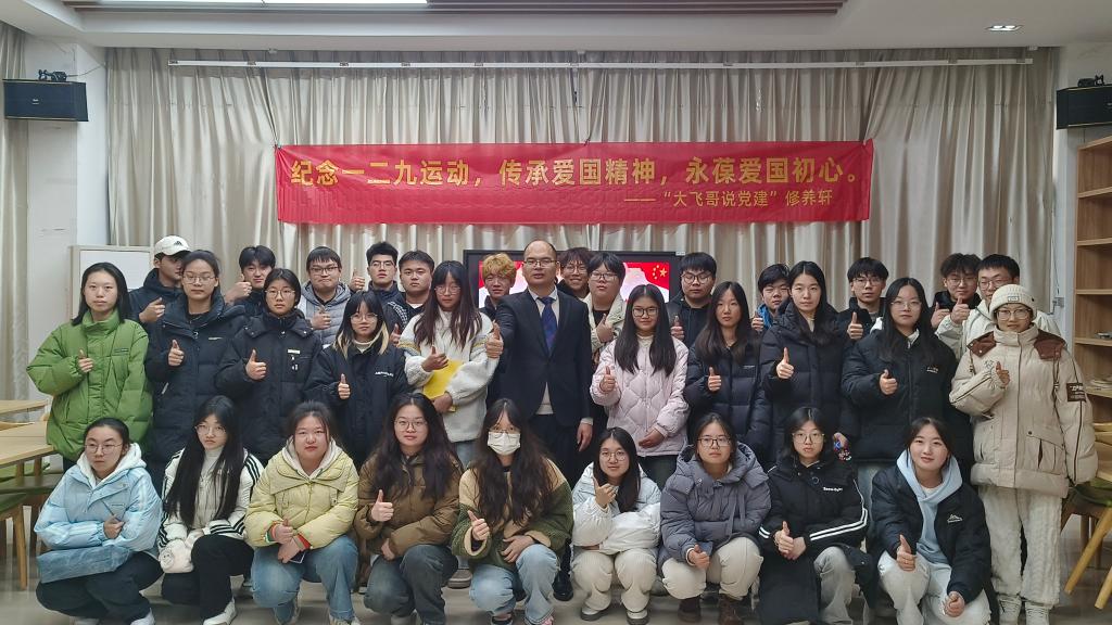 12月9日,建筑工程学院“大飞哥说党建”修养轩开展纪念“一二·九”运动,“传承爱国精神,永葆爱国初心”红色文化党课。本次党课由“大飞哥说党建”修养轩主持人冯飞老师主讲。