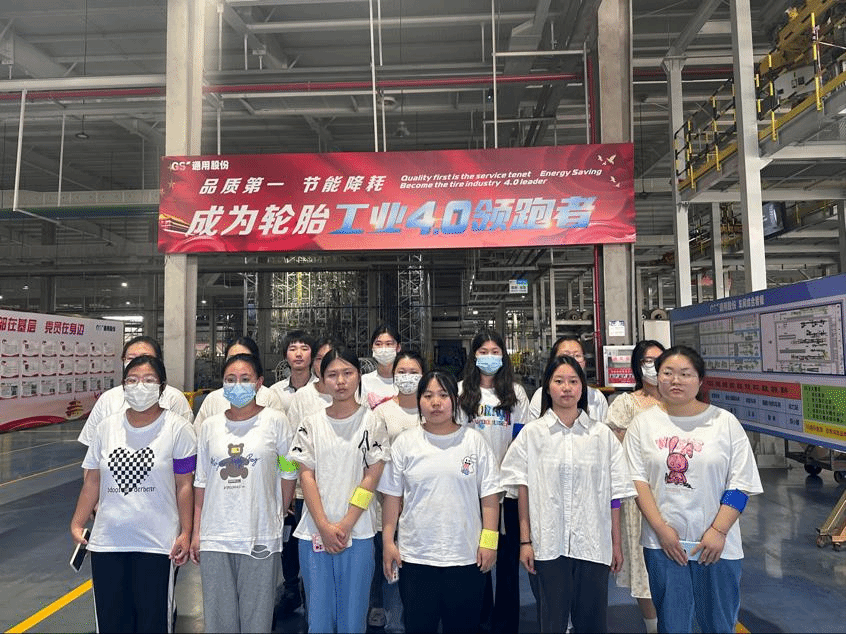 江苏通用科技股份有限公司车间主任杨主任热情接待了孙甜老师一行,交流会上,通用公司办公室主任郑玲对商学院一行的到来表示热烈欢迎,并介绍了通用轮胎作为红豆集团的控股子公司在轮胎研发、生产和销售使用现代化高新技术的发展变化,提出了制造业在管理岗位上对商学院学生的人才素质和专业知识的要求,孙甜老师向公司介绍了商学院会计和财务管理专业目前的建设状况、师资队伍、校企合作等相关情况,并希望双方能充分发挥各自的资源和优势,围绕学生实习就业、产学研融合等方面拓宽合作领域。随后车间杨主任带领老师和学生参观了车间的产品和生产链,让学生切实体会制造业公司不断推进的“智改数转”和打造“5G碳云智能工厂”实际过程,构建起课堂学习与实践实习的桥梁。