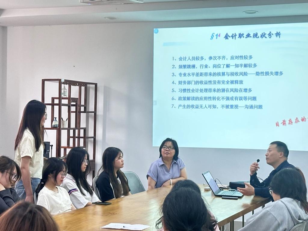 在互动环节,学生们围绕职业前景、技能提升等话题积极提问。刘勇强调,新时代的会计人才不仅需具备扎实的专业硬实力,还需拥有沟通协作等软技能,方能有效应对行业变革的挑战。