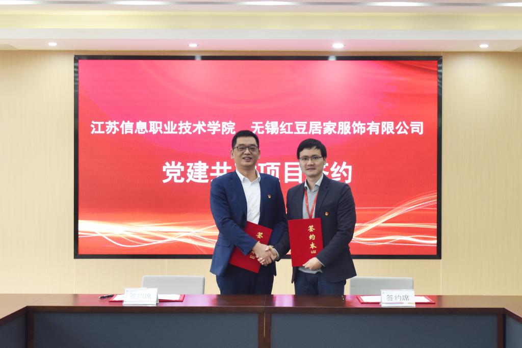 签约仪式上,孔捷书记指出,本次校企合作签约,通过党建引领有利于提升无锡红豆居家服饰有限公司公司在快速发展时期的人才储备、提升人员技术技能水平,也有利于学校提高智慧零售行业的办学水平,希望校企双方能够在人才培养基地、教师队伍建设、教材开发和特色课堂打造等方面进行共建共享,共同为无锡市“465”现代产业体系建设提供人才支撑。