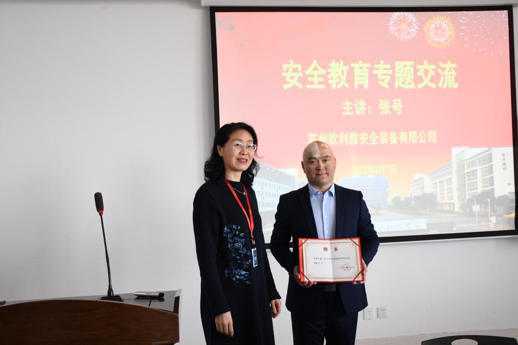 为全面贯彻党的二十大精神和习近平总书记关于安全生产重要论述,学习领会省高校安全工作会议精神,3月7日,商学院特邀05级校友苏州欧利雅安全设备有限公司总经理张号作安全教育专题讲座。讲座由商学院院长蔡丽巍主持。