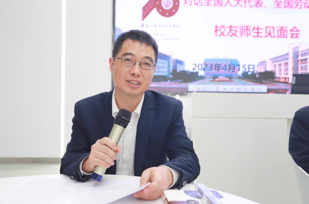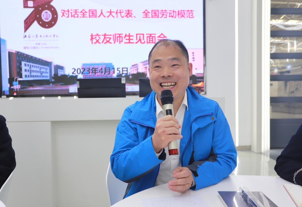 4月15日,为迎接建校70周年,智能工程学院举办了对话全国人大代表、劳动模范校友师生见面会。机8624班校友、全国劳动模范、全国人大代表胡东方,模具981班校友、全国劳动模范、江苏省产业教授陈亮,无锡模具行业协会秘书长任建伟出席本次见面会。活动由智能工程学院院长甘辉主持。