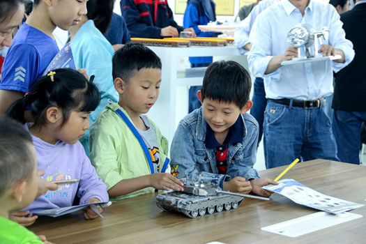 本次活动设置了静态展示、动态加工、拓印体验以及智秀问答环节,孩子们分成四组,在智能工程学院老师指导下井然有序地开展体验。在静态展示区参观了埃菲尔铁塔、竹筒蚂蚁、坦克、羽毛球、玉兔号月球车等加工模型,了解了展品背后的故事;在动态加工区,孩子们亲历了在鸡蛋上雕刻水浒108将等图形、书签雕刻、钟表机芯等加工过程,惊叹不已;在拓印体验区,孩子们用钢膜拓印了《少年中国说》、《东方之美脸谱》,又体验了一把珐琅填色工艺,如奥运吉祥物、超级马里奥、小螃蟹、米老鼠等等,在他们一双双小巧手下,这些模型变得色彩鲜艳,栩栩如生。