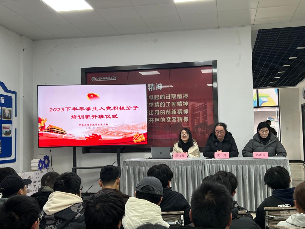 12月19日下午,智能工程学院在学生社区大厅举行2023年下半年入党积极分子培训班开班仪式。开班仪式由学院学生党支部组织委员郏仪安同志主持,学生办公室副主任孙晔珵、学生党支部书记沈焓出席本次开班仪式。