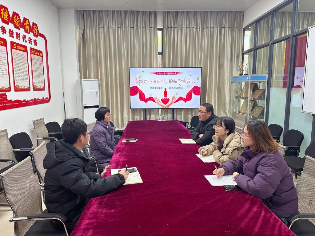 为深入贯彻落实学生心理健康教育工作要求,进一步提升学院心理育人水平,2025年2月15日上午,智能工程学院组织召开2025年春季心理健康教育工作研判会。会议由学院党总支副书记张卫星主持,学生工作处副处长刘月红、心理健康中心教师张永春、学院辅导员郏仪安、于静等辅导员参加会议。