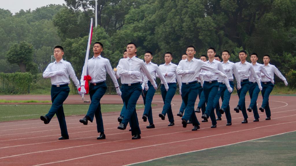 清晨7点整,国旗护卫队迈着铿锵有力的步伐护送五星红旗入场。在激昂雄壮的国歌声中,两院师生整齐肃立,注视着五星红旗在晨光中冉冉升起、迎风飘扬。