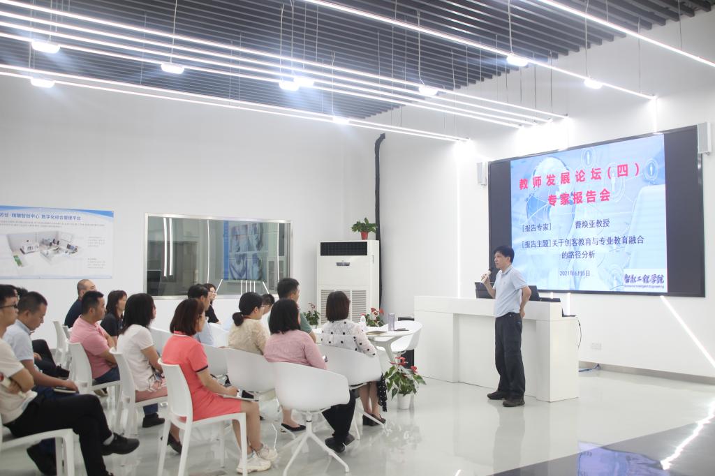 6月5日,智能工程学院成功举办第四期教师发展论坛活动——专家报告会。此次论坛邀请了浙江机电职业技术学院智能制造技术学院曹焕亚教授做主题报告,智能工程学院院长甘辉主持本次活动,智能工程学院专业带头人、博士代表、骨干教师代表参加了此次论坛。