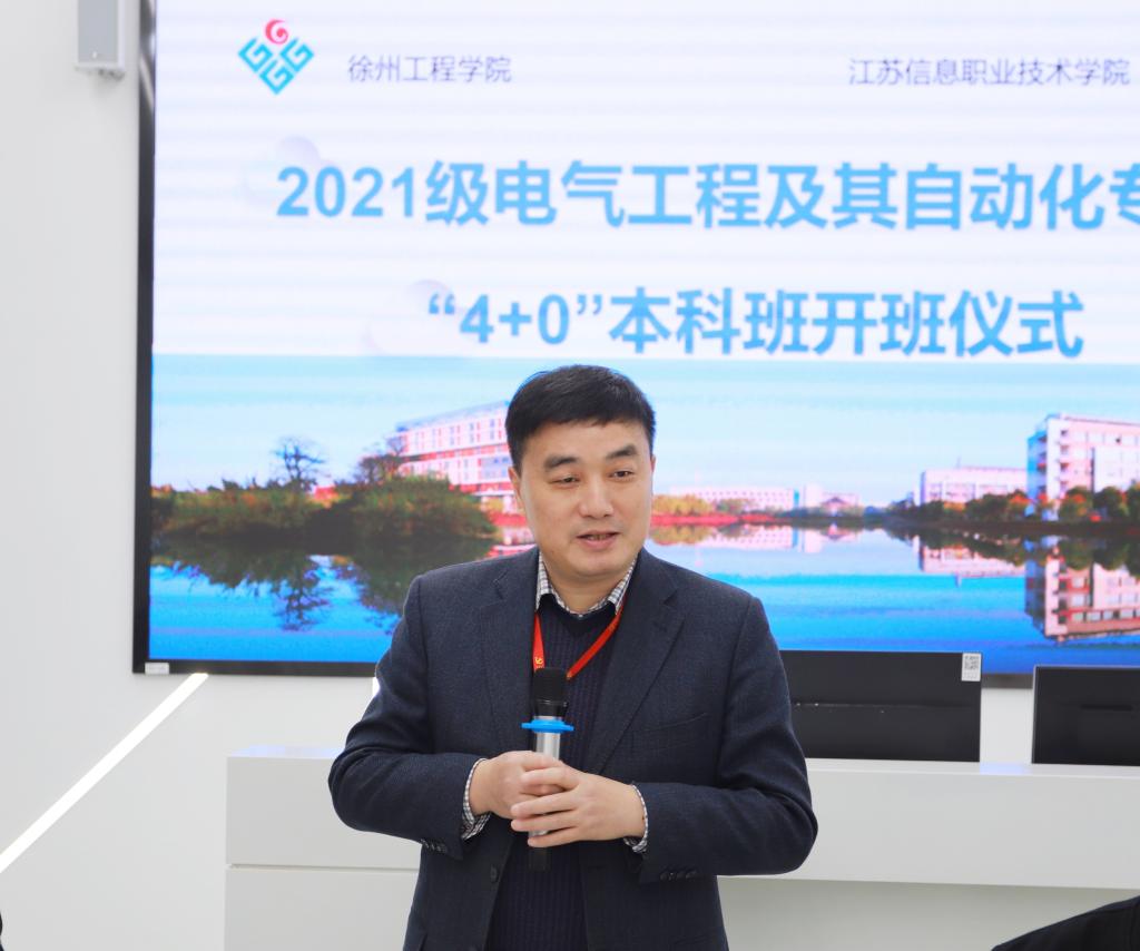11月26日下午,我校举行徐州工程学院与江苏信息职业技术学院联合培养电气工程及其自动化“4+0”本科班开班仪式。学校党委书记席海涛,徐州工程学院电气与控制工程学院院长王树臣、南京工程学院教授郁汉琪参加开班仪式。开班仪式由智能工程学院院长甘辉主持。