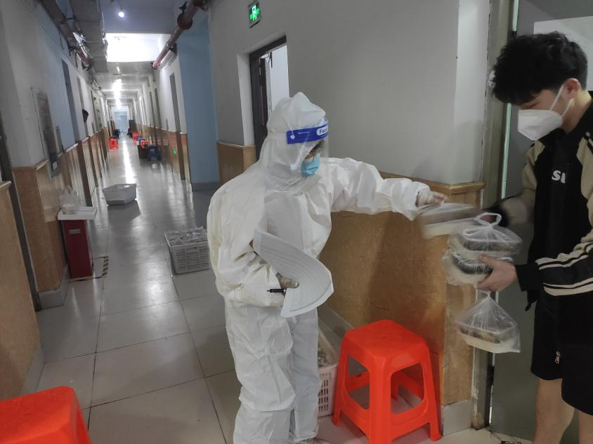 孙晔珵:随着3月30日晚23:10发出的返校召集令,她紧急与所在社区报备并说明情况后,带着行李离开管控小区返回苏信,投入到校园疫情防控工作中。
