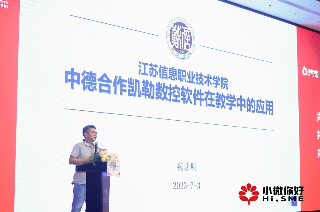 2023年7月3日,中德职业教育应用技术研究院SGI(杭州)启动仪式暨中德中小企业数智化转型会议在杭州举行。我院教师魏法明应邀参加本次大会并在大会上作了“中德合作凯勒数控软件在教学、社会培训及校企合作中的应用”的报告。