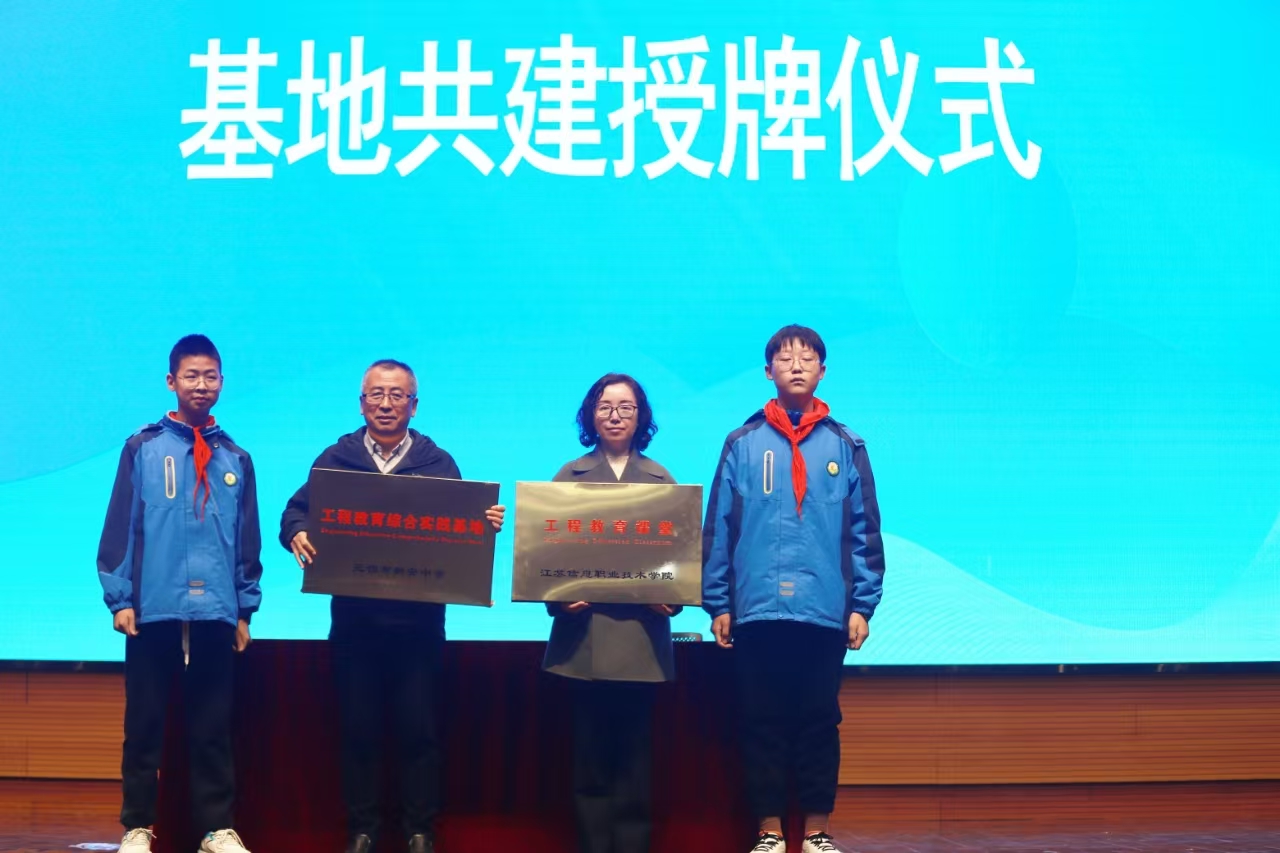 12月3日,无锡市新安中学举行首届科学工程教育节闭幕式暨基地共建授牌签约仪式。我校智能工程学院与艺术设计学院组织师生送教上门,开展智能制造职业体验活动与社团指导,助力实施中学生工程教育。